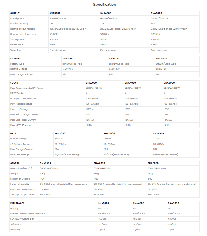 1/ Dòng biến tần phổ thông Inverter Luxpower SNA 5KW, với đầy đủ các tính năng Hybrid: