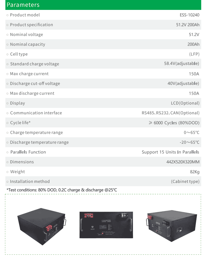 Thông số kỹ thuật Pin lưu trữ Lithium Ecopower 51.2V-200Ah (10.24KW)