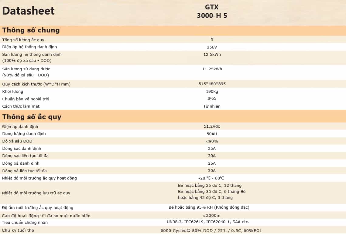 Thông số kỹ thuật Pin lưu trữ Lithium Sofar 12.5KW (GTX3000-H5) 3pha